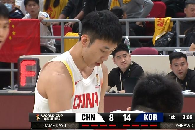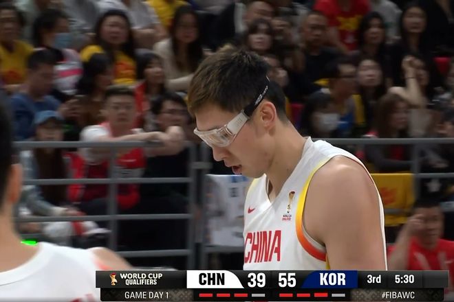 首节哨响,周琦宛如擎天巨柱,在内线翻江倒海。面对对手的"铁桶阵"防守,他依然能如游龙般灵活转身,一记漂亮的抛投为中国队首开纪录。然而韩国队的"利刃"李贤重很快亮出锋芒,三分线外箭无虚发,每一次出手都像精准制导的导弹,直击篮筐。中国队的小伙子们虽奋力拼搏——曾凡博送出的"火锅大礼"引爆全场,廖三宁化身"闪电侠"频频突破得手——但首节战罢,仍以16:24落后。